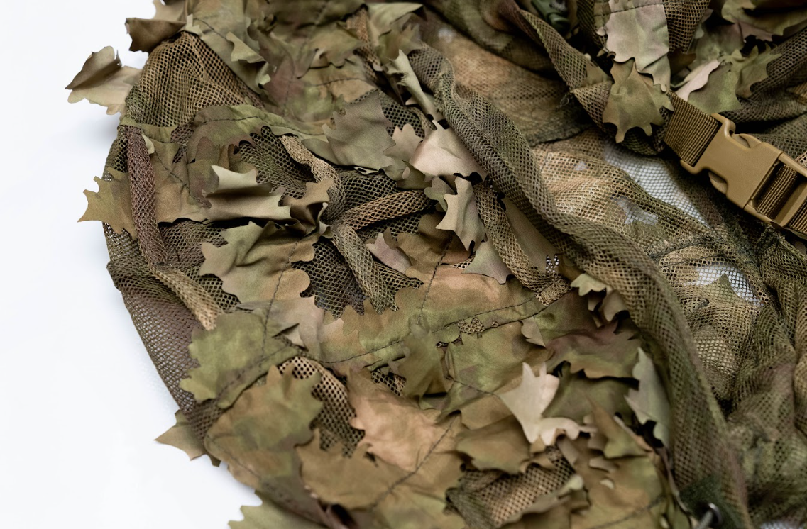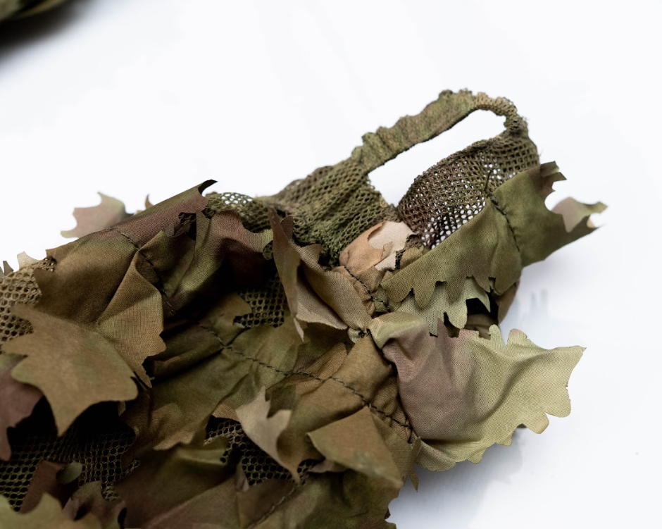 The Stalker Combat Cape in colour 'Alder' has been handcrafted using the same IRR Materials as the normal Stalker Ghillie Suit and uses the same randomized leaf patterning. It comes with an elastic loop system like the Stalker Ghillie Suit which allows for the adding of natural vegetation. The hood and shoulders/arms are covered by a webbing system for easy crafting or to add extra natural vegetation.