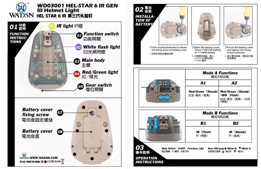 HEL-STAR 6 IR- GEN III Helmet Marker - DE - RED LIGHT