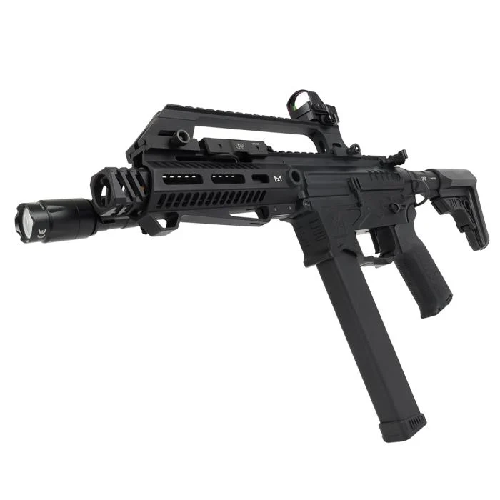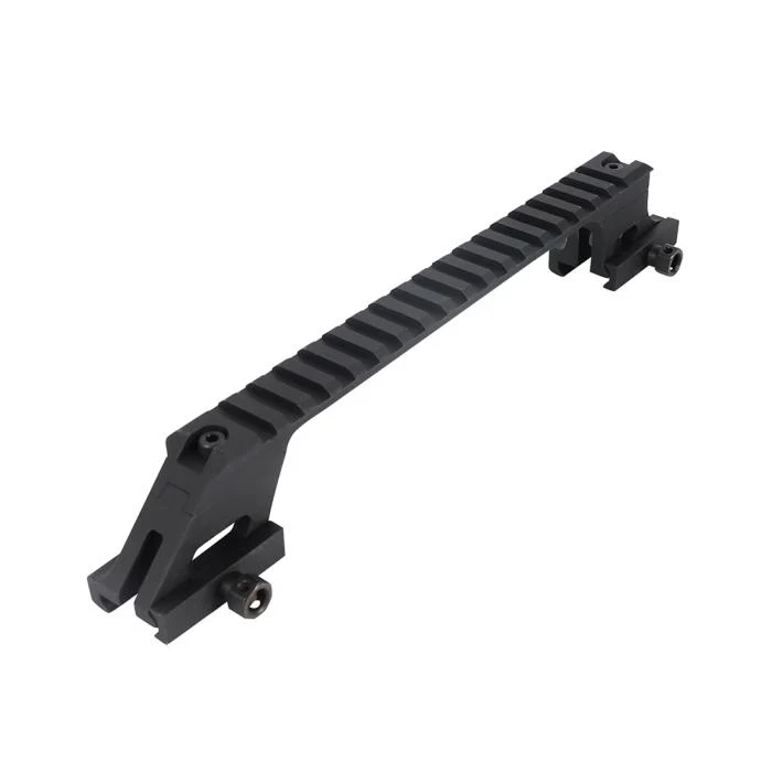 It can be equipped with any gun that has a Picatinny standard rail on the top of the body , so you can quickly add a carrying handle and high mount rail.
