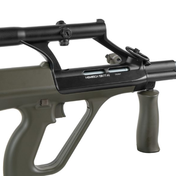 Reinforced steel-based foregrip and steel sling swivels.