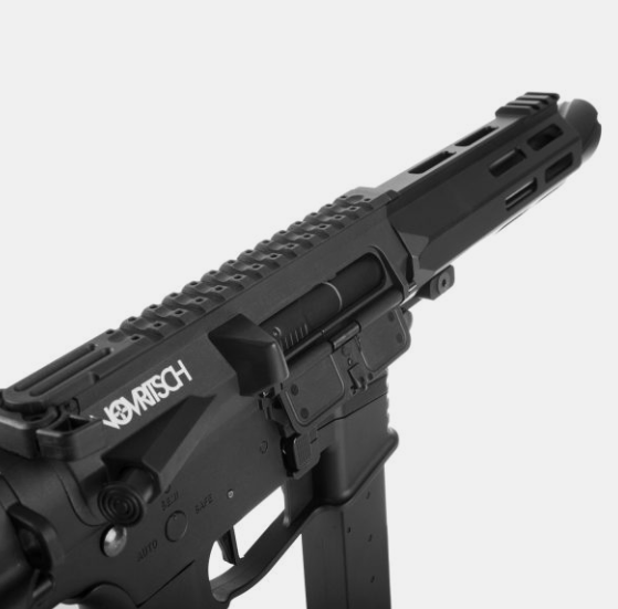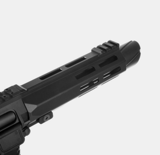- Polymer body with top Picatinny rail for accessories and CNC aluminium slotted Handguard