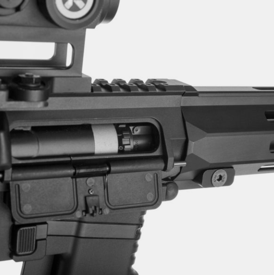 The SSR9 DSG is a unique AEG. It comes with Dual Sector Gear preinstalled out of the box. This upgrade dramatically increases RPS and is usually reserved for techs as it requires a lot of fine-tuning to get it right. The DSG version makes the SSR9 arguably one of the best airsoft CQB AEG. It offers well-proven quality parts, as well as great ergonomics — all that while being more compact than the regular AR platform.