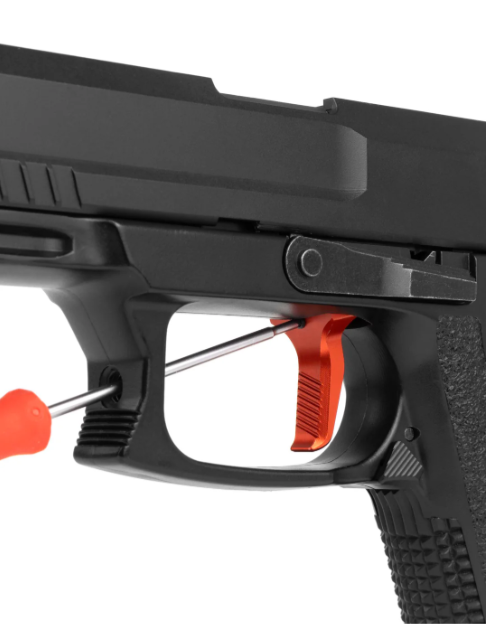 SSX23 / MK23 aftermarket trigger upgrade with adjustable pre-travel to reduce total trigger pull and improved ergonomics. It also has tighter tolerances which reduces the trigger bar rattle in the pistol making it that little bit quieter.