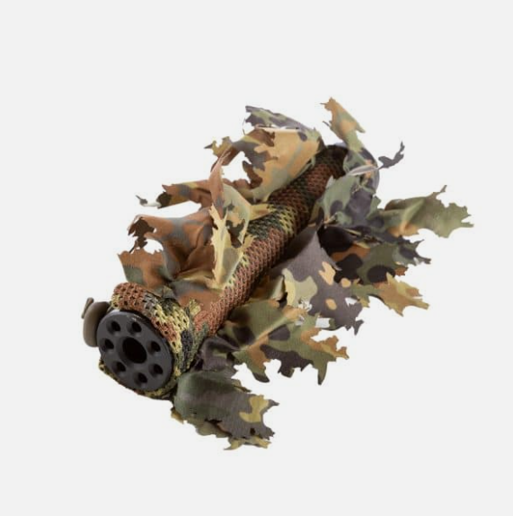 As humans, we’re very good at recognizing familiar shapes and an uncamouflaged rifle can easily give away your position. Painting your gun can help, but it comes with drawbacks so we decided to find a new, better solution. The rifle mock suppressor cover with 3D leaves is the best and easiest answer to your camouflage problem.