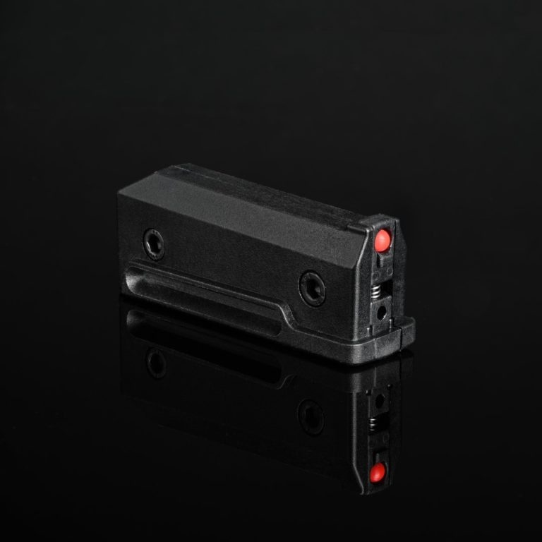 - Quick release button inside the magwell to empty the feeding tube.
