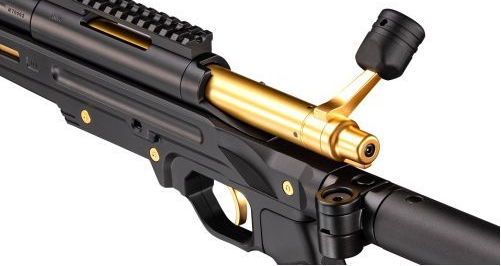 A bolt-action air rifle series in which the bolt is pulled by hand one shot at a time and then returned to prepare for the next shot. The VSR-ONE, an original Tokyo Marui design, is now available in a new black and gold color!