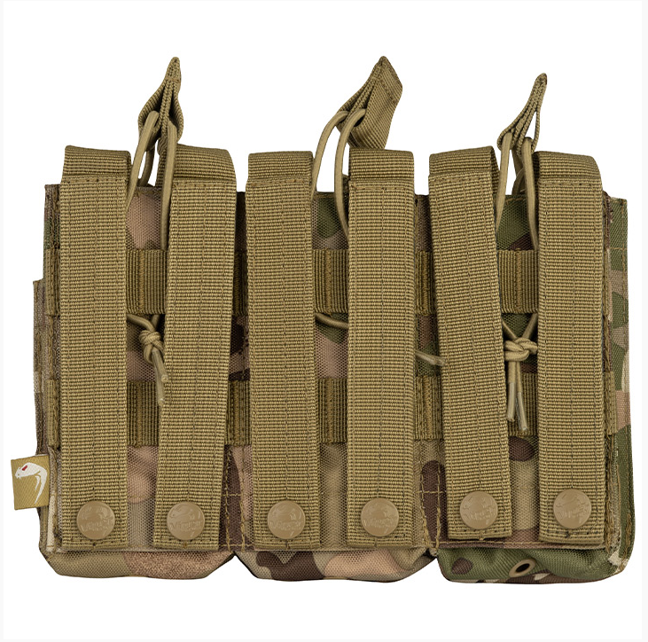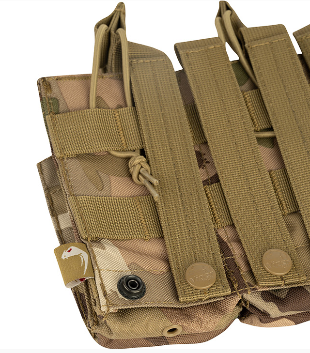 The Viper Duo-Mag Pouch (Treble) enables the user to stock magazines on most MOLLE panels. The 600D Cordura enhances the smooth functionality while magazines are securely held by quick release bungee retainers.