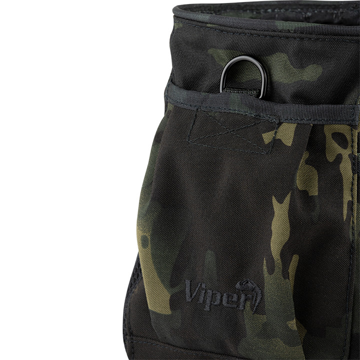 The Viper Elite Dump Bag offers so much more than storage for empty magazines. Outside you will find two utility sleeves on each side of the bag and a hook and loop closure front utility pocket. We also added a handy D-Ring attachment. The main compartment can be closed using adjustable bungee retainer to keep your magazines safe. Inside we added a mini hook and loop closure pocket to keep you valuables safe. The Viper Elite Dump Bag can be attached to your loadout with a MOLLE attachment at the back of the bag.