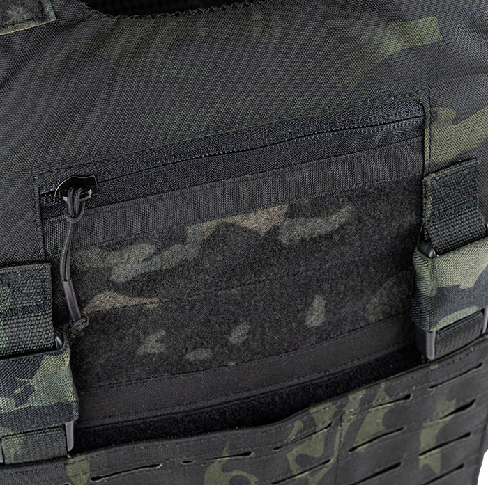 Zipped admin compartment on upper chest
